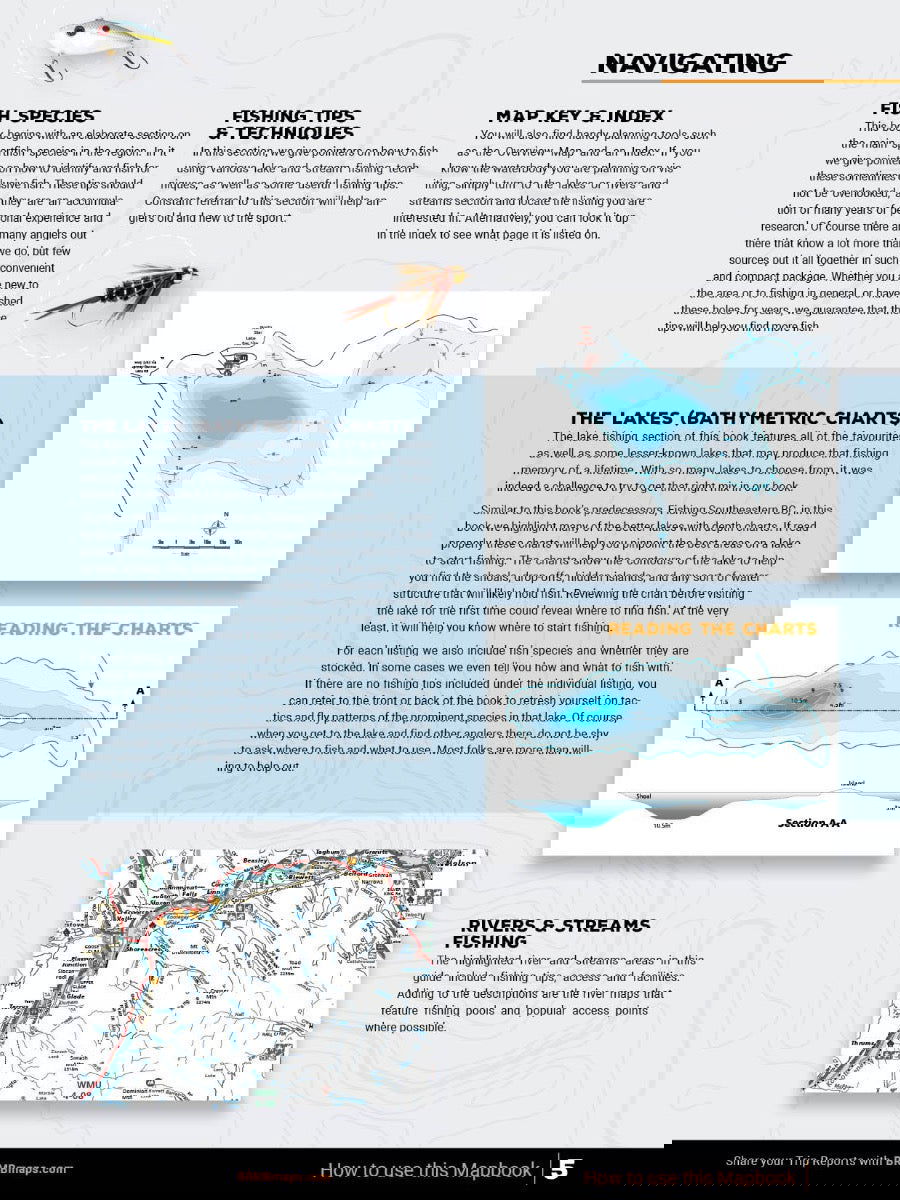 As we continue to work to provide the best and most up to date information, users of this Fishing Mapbook will find that fishing descriptions, access and facilities have been reviewed and fully updated, including new campsite, lodge, and resort details. We have also included new and improved bathymetric lake depth charts, as well as the most up to date information available for fish species and stocking information for all lakes and rivers. We have even included the newest fishing docks to our maps.