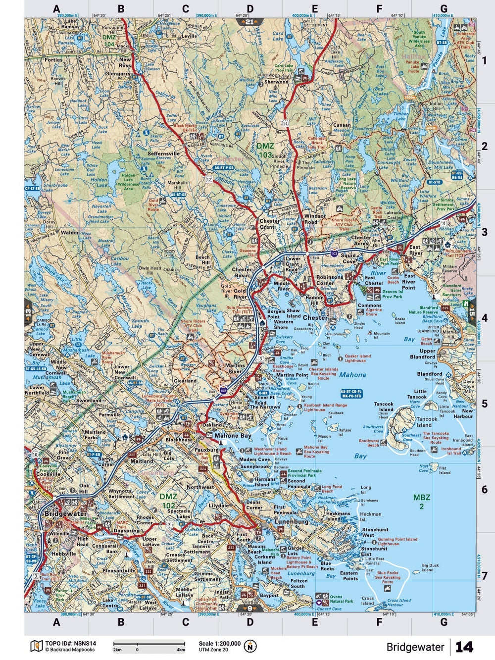 This recreation topographic map for Brigewater highlights all the logging/resource roads, hunting areas, fishing lakes & streams, campsites, paddling routes for canoeing and kayaking, wildlife viewing areas, multi-use trails for hiking, biking, horseback riding, cross-country skiing and snowshoeing, motorized trails for ATVing and snowmobiling & more. Covering 1,925 km2 (745 mi2), this 1:65,000 scale map measures 38 x 50 km (24 x 31 mi), providing you with more topographic and recreational detail for the Yarmouth area than any other map on the market. Special features include the addition of Crown land areas and countless new roads, trails and recreational Points of Interest. Included on this map are Mahone Bay, Lunenburg Bay, River Bay, Chester, Tancook Island, Card Lake, New Ross, Middle River, Bridgewater, La Have River and more!