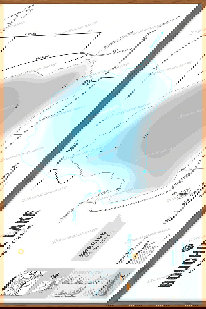This Fishing Chart covers Bouchie (Six Mile) Lake on Cariboo Region, BC. Resting in BC Fishing Region 5, the map features the lake bathymetry (or lake depths) and shore features including boat launches, campsites, fishing docks, parks and resorts. In addition to road or trail access points, the map also includes the lake location and information such as elevation, surface area, mean and maximum depth, and waypoint. Additional features include the fish species found in the lake, an area indicator or map key, scale bar and map legend.
