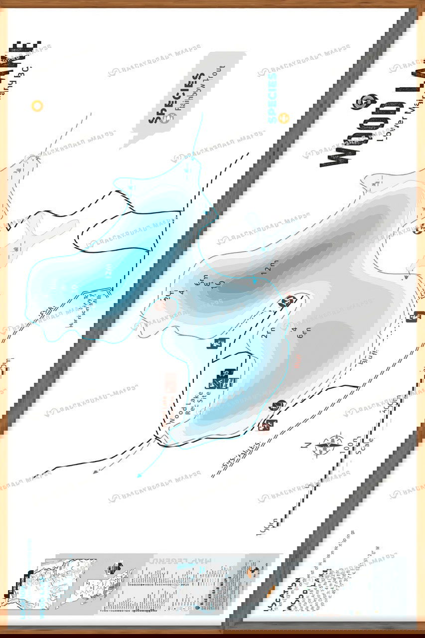 This Fishing Chart covers Wood Lake - Harrison Area on Lower Mainland, BC. Resting in BC Fishing Region 2, the map features the lake bathymetry (or lake depths) and shore features including boat launches, campsites, fishing docks, parks and resorts. In addition to road or trail access points, the map also includes the lake location and information such as elevation, surface area, mean and maximum depth, and waypoint. Additional features include the fish species found in the lake, an area indicator or map key, scale bar and map legend.