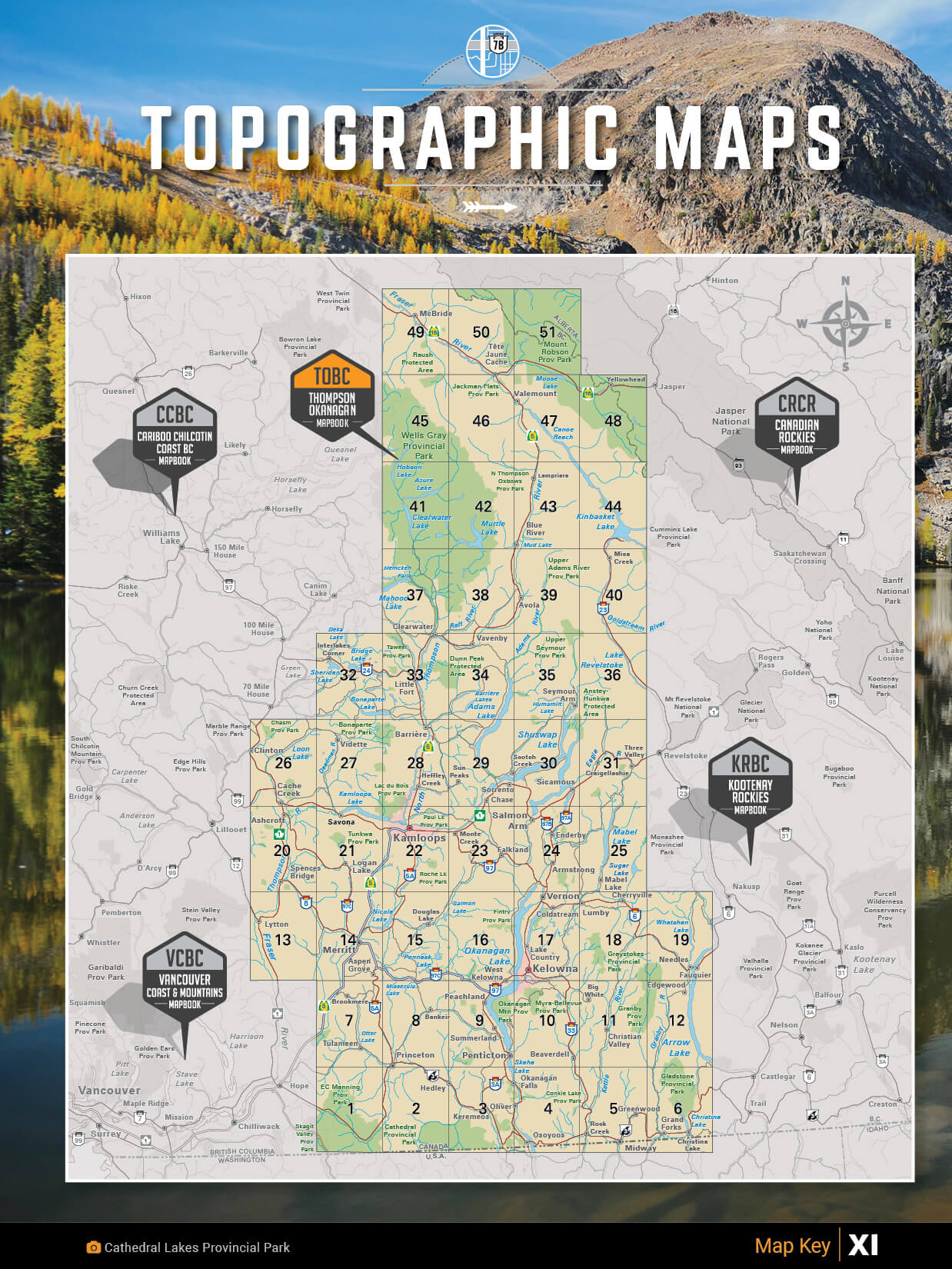 Whether you’re into camping, hiking, fishing, ATVing, snowmobiling, hunting, cross-country skiing, or paddling, Backroad Mapbooks offers the most detailed and easy-to-use guide for navigating BC’s wild heart.
