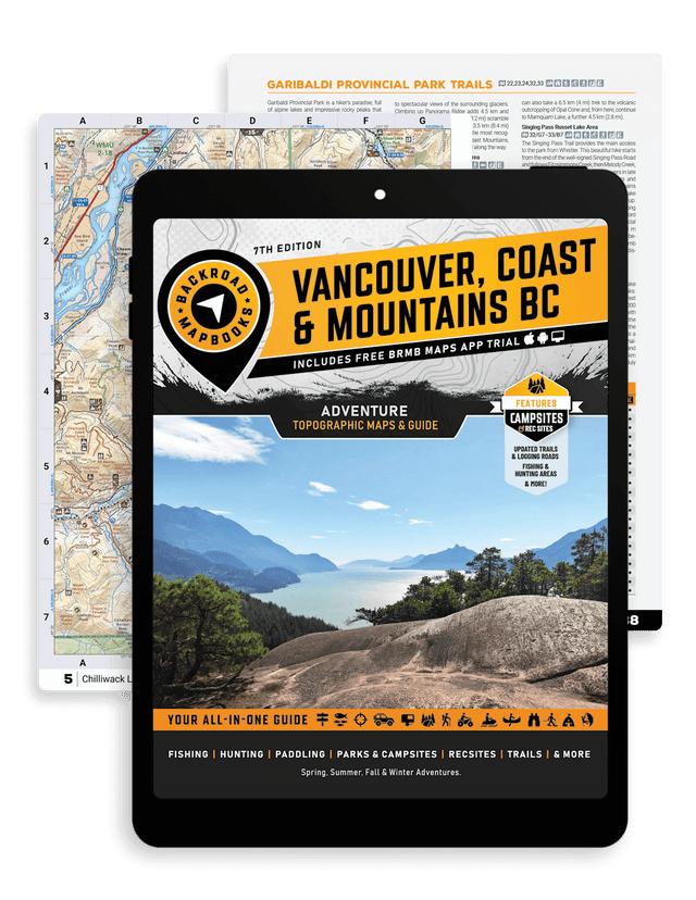 The 6th Edition Vancouver Coast & Mountains Backroad Mapbook features several additions and expansions from our last edition. You will find an updated and expanded Community Profiles section, several additions to the Adventure listings, updated fish stocking and hiking trail charts, new multi-day overland driving routes for off-road enthusiasts and a new Rock Climbing Adventure section. Our maps now feature private and leased land, labelled sportfish species for lakes and rivers, plus countless new recreation POI's, roads, trails and paddling routes.