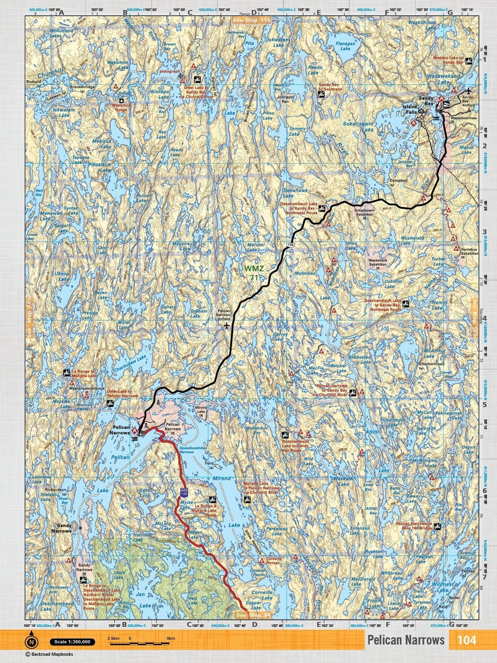 This recreation topographic map for the Pelican Narrows area highlights all the logging and resource roads, multi-use trails for hikers, mountain bikers, horseback riders, cross-country skiers and snowshoers, motorized trails for ATVers and snowmobilers, fishing lakes and rivers, recreation areas, campgrounds, day-use areas, viewpoints, backcountry campsites, work camps, oil & gas sites and more. No other map for the area provides you with this level of recreational or topographic detail. Covering 4,450 km2 (1,620 mi2) in total, this 1:100,000 scale map measures 58 x 77 km (36 x 48 mi). Special features include the addition of Oil & Gas information including gas plants, disposal and compressor stations and updated seismic line corridors, the addition of Municipal Regional District Boundaries, new lake data and more. This map includes Pelican Narrows, Churchill River, Mirond Lake, Pelican Lake, Flanagan Lake, Chachukew Lake, Jan Lake, Sturgeon Weir River and more!