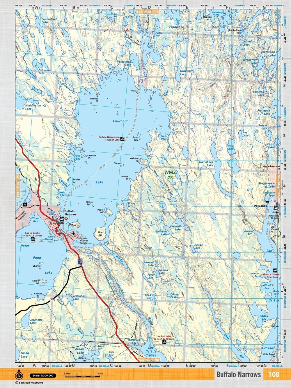 This recreation topographic map for the Buffalo Narrows area highlights all the logging and resource roads, multi-use trails for hikers, mountain bikers, horseback riders, cross-country skiers and snowshoers, motorized trails for ATVers and snowmobilers, fishing lakes and rivers, recreation areas, campgrounds, day-use areas, viewpoints, backcountry campsites, work camps, oil & gas sites and more. No other map for the area provides you with this level of recreational or topographic detail. Covering 4,450 km2 (1,620 mi2) in total, this 1:100,000 scale map measures 58 x 77 km (36 x 48 mi). Special features include the addition of Oil & Gas information including gas plants, disposal and compressor stations and updated seismic line corridors, the addition of Municipal Regional District Boundaries, new lake data and more. This map includes Buffalo Narrows, Churchill Lake, Frobisher Lake, Peter Pond Lake, Lac Ile a La Crosse, Black Bay, Churchill River, Kazan River, Kazan Lake and more!