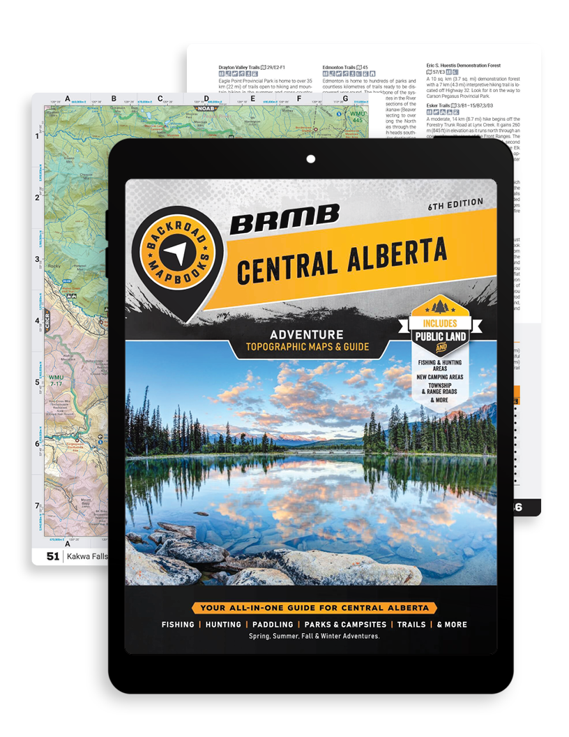 Covering the central region of the province of Alberta, including the cities of Red Deer and Edmonton, this book is your ultimate guide to camping, hiking, fishing, ATVing, hunting, snowmobiling, paddling and industry resource sites in this spectacular region. From the area around Lac La Biche in the northeastern reaches of this book, where some of Alberta’s best lake fishing can be found, to the stunning Rocky Mountain Parks in the western reaches and the sprawling prairie wilderness in between, Central Alberta is full of outdoor adventure opportunities. This is an expansive area, and while that makes for plenty of space to work, explore and play, it can also make finding that special outdoor spot that much more difficult. This is why we have taken great care to provide you with the most comprehensive and easy-to-use mapbook on the market.