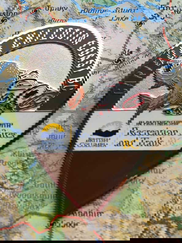 This specially designed geocoin is one of a series of six tribute geocoins to the beautiful outdoor regions of British Columbia. The coin is available as "collectable" or a "trackable" geocoin (trackable on geocaching.com). The Cariboo Chilcotin Coast BC coin is brown and features a salmon. The salmon symbolizes the region and is shown on the front as an image along with the native artwork equivalent. The artwork is surrounded by the region name and the logo of Recreation Site & Trails BC. The reverse is a map pin with Backroad Mapbook Logo representing the hundreds of thousands of outdoor points of interest mapped over the companies 25-year history.