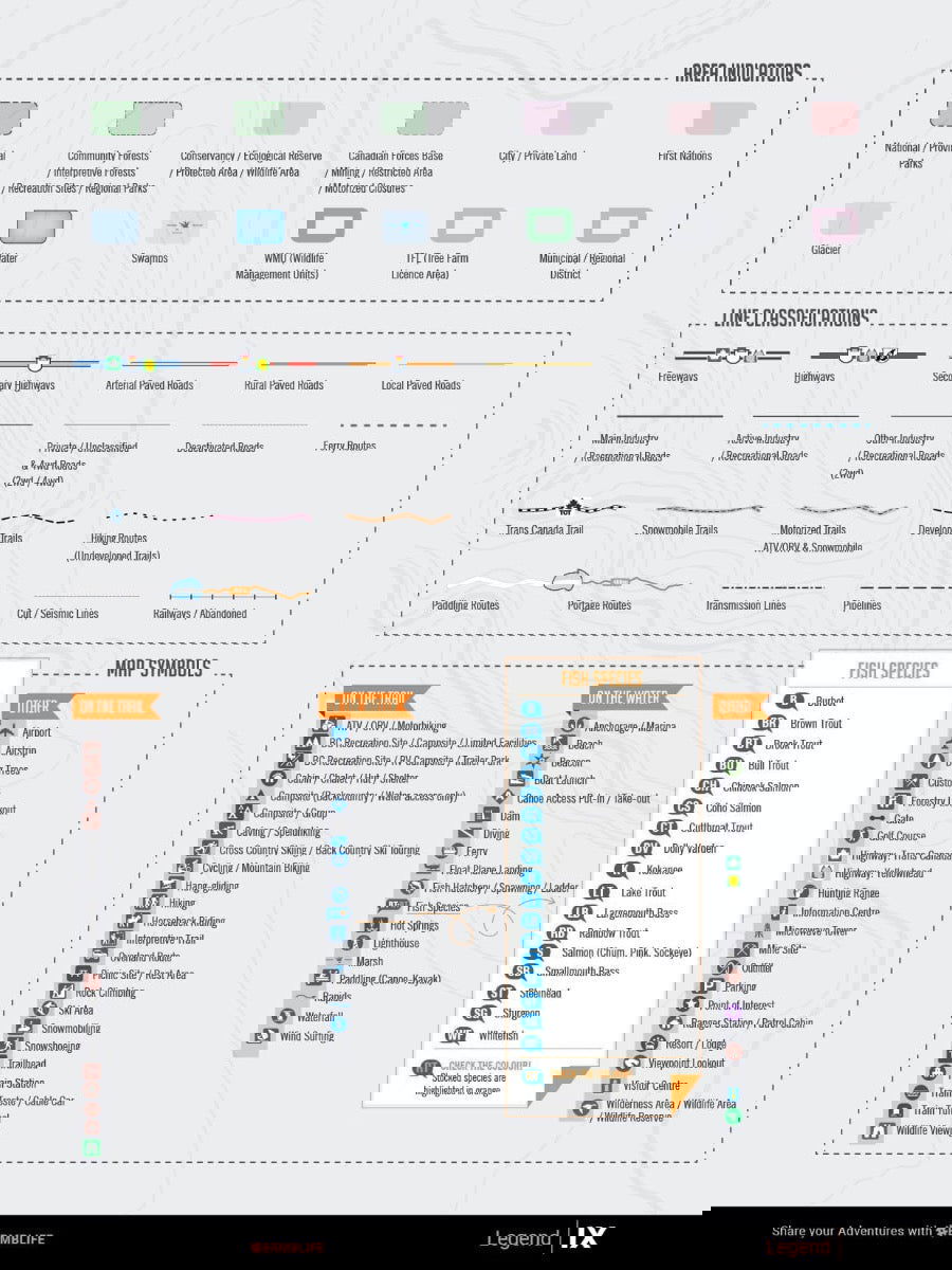 Highways, Logging Roads, Land & Water Features, Parks, Adventure Points of Interest, Campgrounds, Hiking Trails, Motorized Trails, Paddling Routes, Hunting & Fishing Areas, Winter Recreation and More.