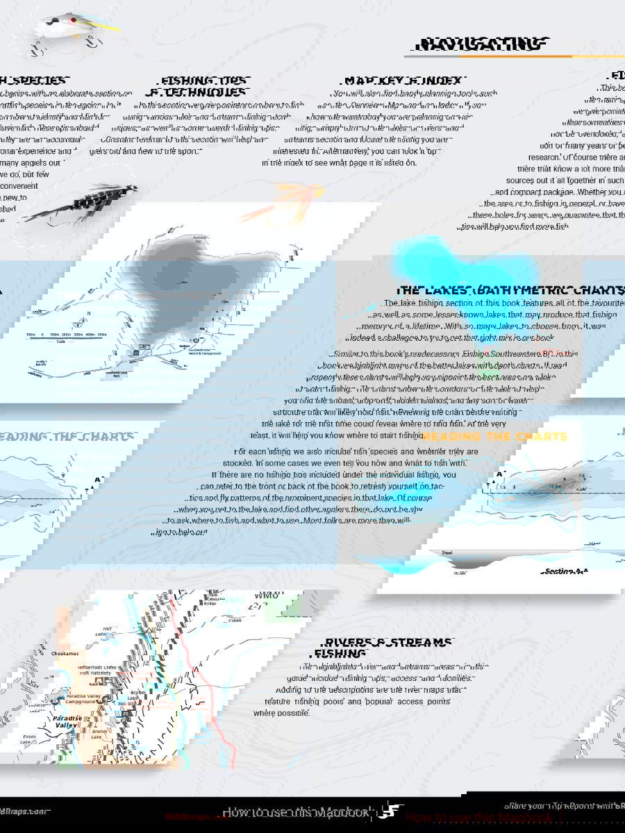 As we continue to work to provide the best and most recent information, users of this Fishing Mapbook will find that fishing descriptions, access and facilities have been reviewed and fully updated, including campsite, lodge and resort details. We have also included new and improved bathymetric lake depth charts, as well as the most up to date information available for fish species and stocking information for all lakes and rivers. We have even included the newest fishing docks to our maps.