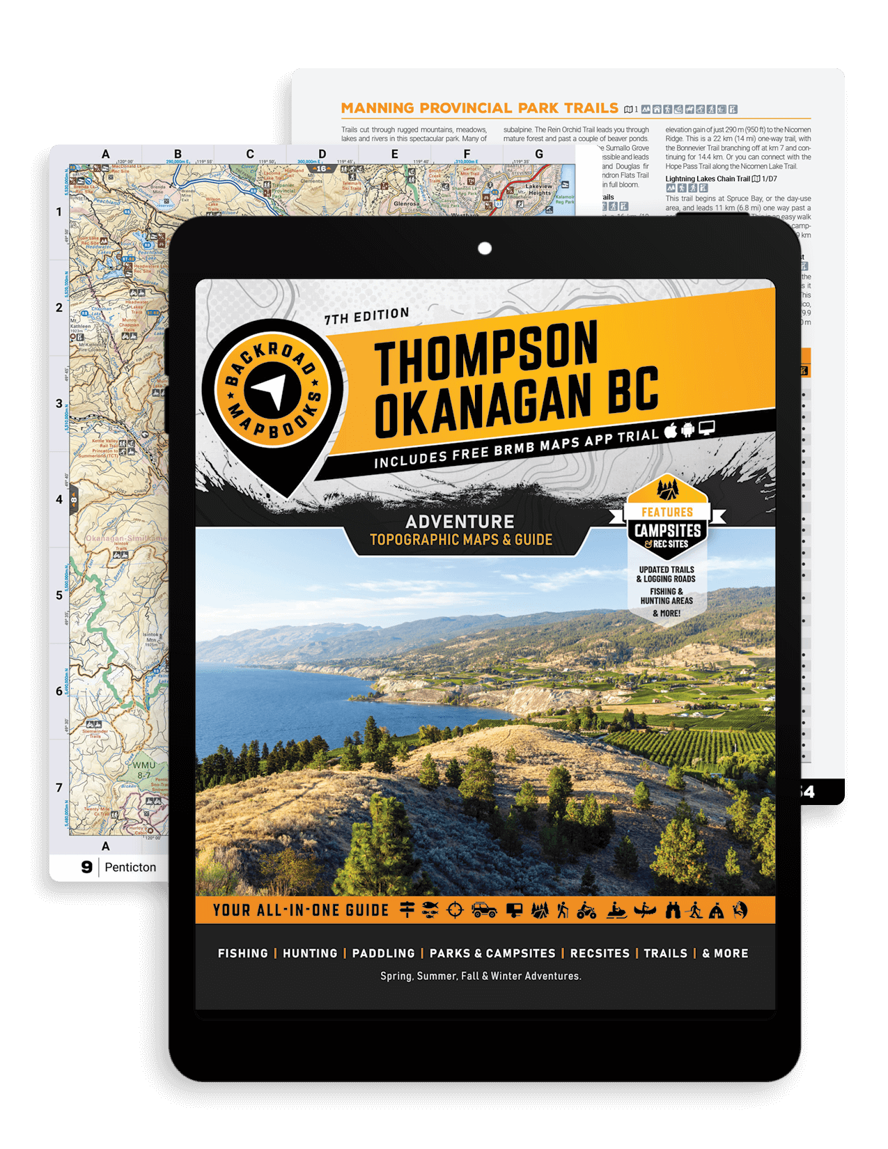 We have spent countless hours updating our maps and expanding our written content to allow you to navigate this magical part of BC as smoothly as possible. Our maps now feature private and leased land, labelled sportfish species for lakes and rivers, updated fish stocking and hiking trail charts, an updated and expanded Community Profiles section plus countless new roads, trails and paddling routes. Of course, this Mapbook includes all the classic features you have come to expect from our products including industry-leading topographic relief and shading, thousands of adventure Points of Interest, written Adventure descriptions and much more. No other navigational tool provides you with as much recreation information for the Thompson Okanagan as this one.
