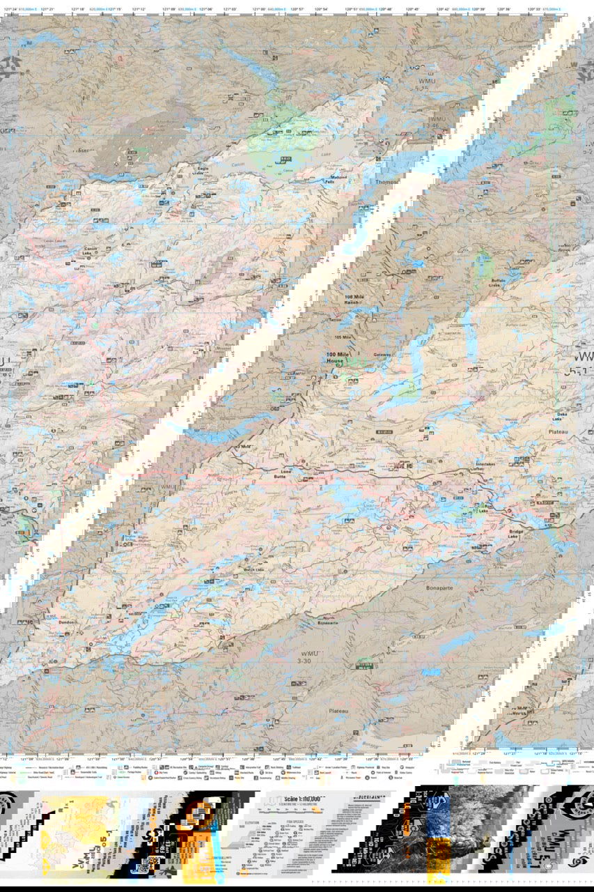 This topographic hunting map covers Wildlife Management Unit 5-1 in Cariboo region British Columbia. Featuring 1:20,000 scale water and road data from the popular Backroad Mapbook series, the maps clearly mark Wildlife Management Units, along with private land areas, Indian reserves and park areas. Updated road and trail systems, recreational points of interest, campsites, fish species and more make these the most detailed hunting maps available on the market. WMU 5-1 covers a small area to the east of 100 Mile House, primarily bounded by the Hendrix Lake Road to the north over to the eastern shores of Canim Lake, south to Highway 24 and then southwest along Bonaparte Road to Highway 97 and the western boundary.