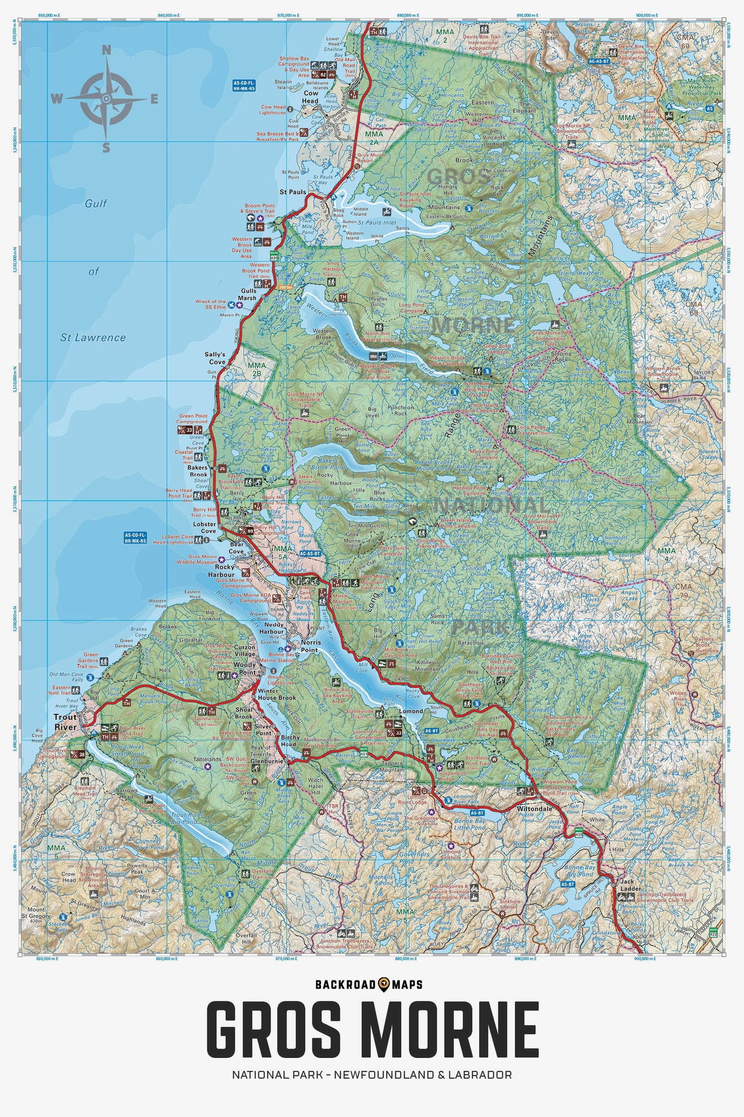 Covering all of Gros Morne National Park, this Newfoundland topographic recreation map highlights all the access roads and trails for hikers, anglers, paddlers, skiers, and backcountry enthusiasts. Showcasing frontcountry and wilderness campsites, boat launches, huts and cabins, picnic sites, snowmobile routes, viewpoints, waterfalls, and fishing hotspots, there is a lifetime of outdoor adventures to be found here. Shown at a 1:100,000 scale, this map features our industry-leading topographic contours and relief shading, as well as roads, padding routes and trails, and snowmobile areas. Included on the map are Bakers Brook, Cow Head, Lobster Cove, Norris Point, Rocky Harbour, Trout River, Witondale, Woody Point, Bonne Bay, Lomond River, Long Range Mountains, Western Brook Pond, and more! No other map covers all of Gros Morne National Park with this level of recreation detail.