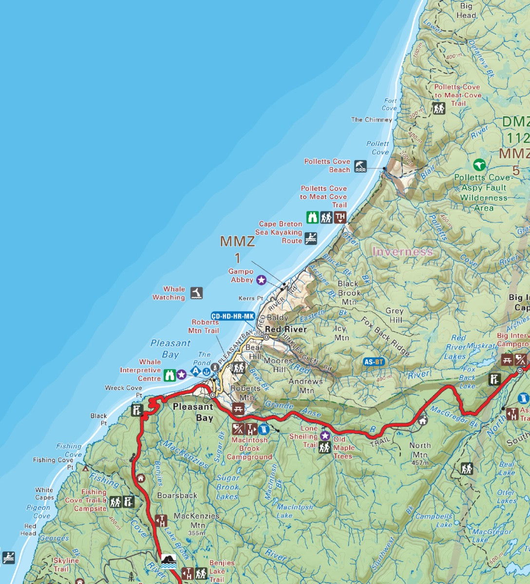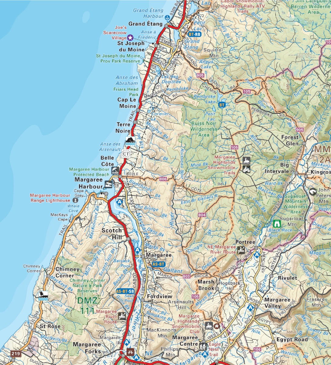 Covering all of Cape Breton Island, Nova Scotia, this topographic adventure map showcases this popular area of Atlantic Canada like never before. Produced using the ever-popular Backroad Mapbook series of maps, the map features all the highways and logging roads, attractions, campsites, fishing hot spots, hunting management zones, paddling routes and trails in the area. With 1:10,000 water and road data, no other map for the area provides you with this level of recreational or topographic detail. Unique to this Backroad Destination Map is information on camping and trails in Cape Breton Highlands National Park. Printed on a durable synthetic material, the map includes Bras d'Or Lake, Cabot Trail, Cape Breton Highlands National Park, Dingwall, Inverness, Louisbourg, Port Hawkesbury, Sydney and more!
