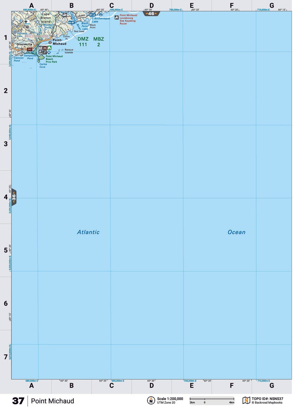 This recreation topographic map for Port Michaud highlights all the logging/resource roads, hunting areas, fishing lakes & streams, campsites, paddling routes for canoeing and kayaking, wildlife viewing areas, multi-use trails for hiking, biking, horseback riding, cross-country skiing and snowshoeing, motorized trails for ATVing and snowmobiling & more. Covering 1,925 km2 (745 mi2), this 1:65,000 scale map measures 38 x 50 km (24 x 31 mi), providing you with more topographic and recreational detail for the Yarmouth area than any other map on the market. Special features include the addition of Crown land areas and countless new roads, trails and recreational Points of Interest. Included on this map are Port Michaud,Cape Breton Island,Point Michaud Beach Provincial Park,Gracieville and more!