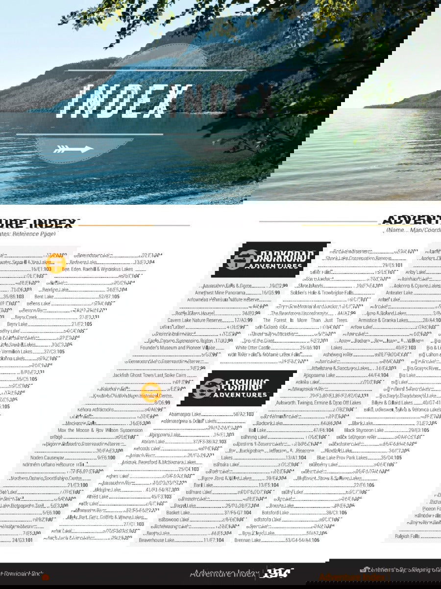 Our easy-to-use index is divided into Map and Adventure sections to make it even simpler to navigate. Here you will find page numbers and map coordinates for each activity and location, plus important numbers and websites, and an advertiser list for easy referencing.