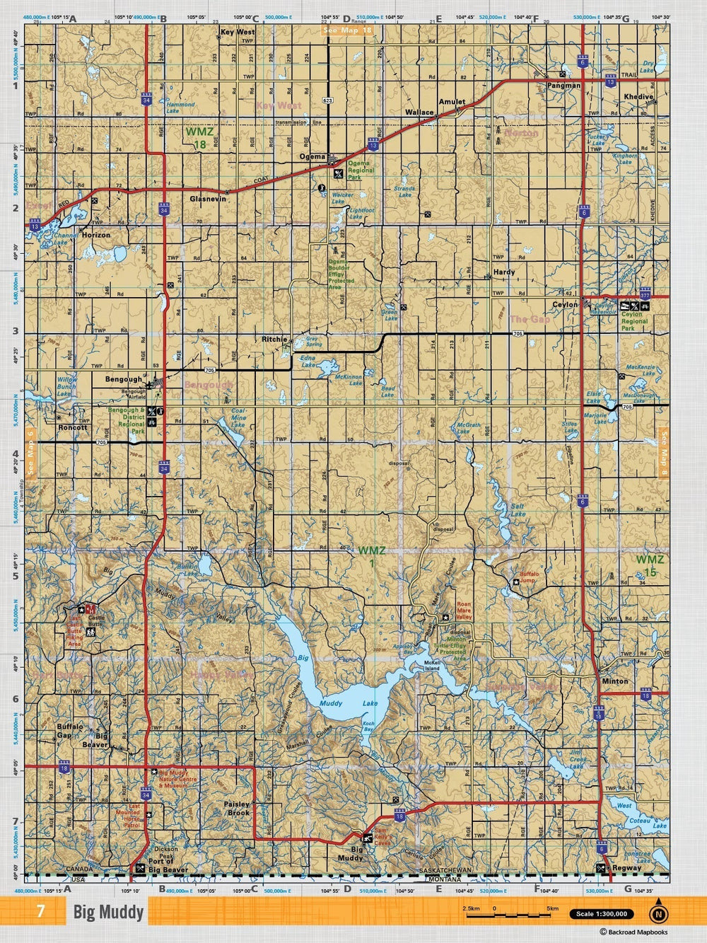 This recreation topographic map for the Bengough area highlights all the logging and resource roads, multi-use trails for hikers, mountain bikers, horseback riders, cross-country skiers and snowshoers, motorized trails for ATVers and snowmobilers, fishing lakes and rivers, recreation areas, campgrounds, day-use areas, viewpoints, backcountry campsites, work camps, oil & gas sites and more. No other map for the area provides you with this level of recreational or topographic detail. Covering 4,450 km2 (1,620 mi2) in total, this 1:100,000 scale map measures 58 x 77 km (36 x 48 mi). Special features include the addition of Oil & Gas information including gas plants, disposal and compressor stations and updated seismic line corridors, the addition of Municipal Regional District Boundaries, new lake data and more. This map includes Bengough, Big Muddy Lake, Salt Lake, Ogema Regional Park, Ceyon Regional Park, West Corteau Lake and more!