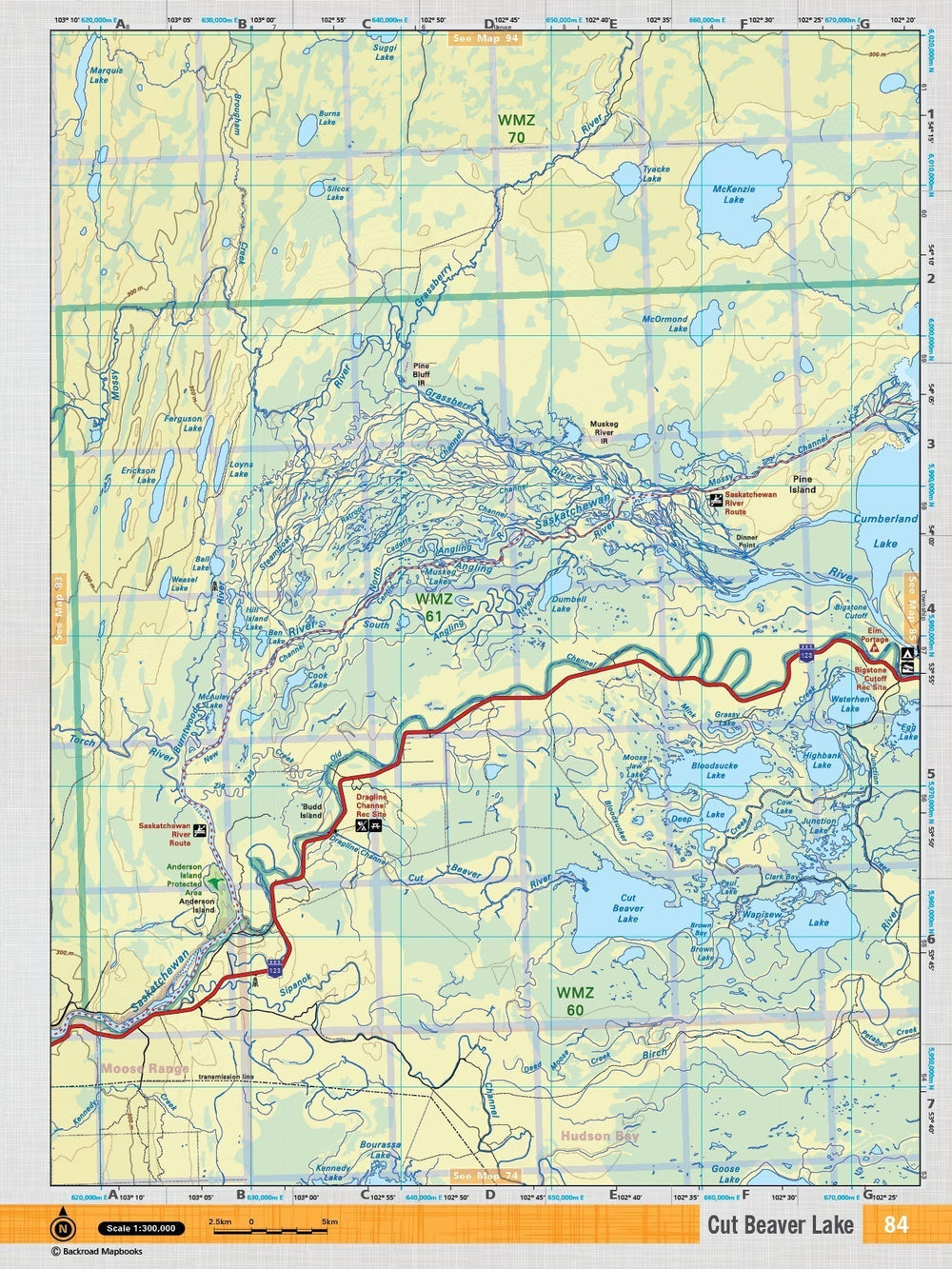 This recreation topographic map for the Cut Beaver Lake area highlights all the logging and resource roads, multi-use trails for hikers, mountain bikers, horseback riders, cross-country skiers and snowshoers, motorized trails for ATVers and snowmobilers, fishing lakes and rivers, recreation areas, campgrounds, day-use areas, viewpoints, backcountry campsites, work camps, oil & gas sites and more. No other map for the area provides you with this level of recreational or topographic detail. Covering 4,450 km2 (1,620 mi2) in total, this 1:100,000 scale map measures 58 x 77 km (36 x 48 mi). Special features include the addition of Oil & Gas information including gas plants, disposal and compressor stations and updated seismic line corridors, the addition of Municipal Regional District Boundaries, new lake data and more. This map includes Cut Beaver Lake, Cumberland Lake, Saskatchewan River, Anderson Island Protected Area, Grassberry River, McKenzie Lake and more!