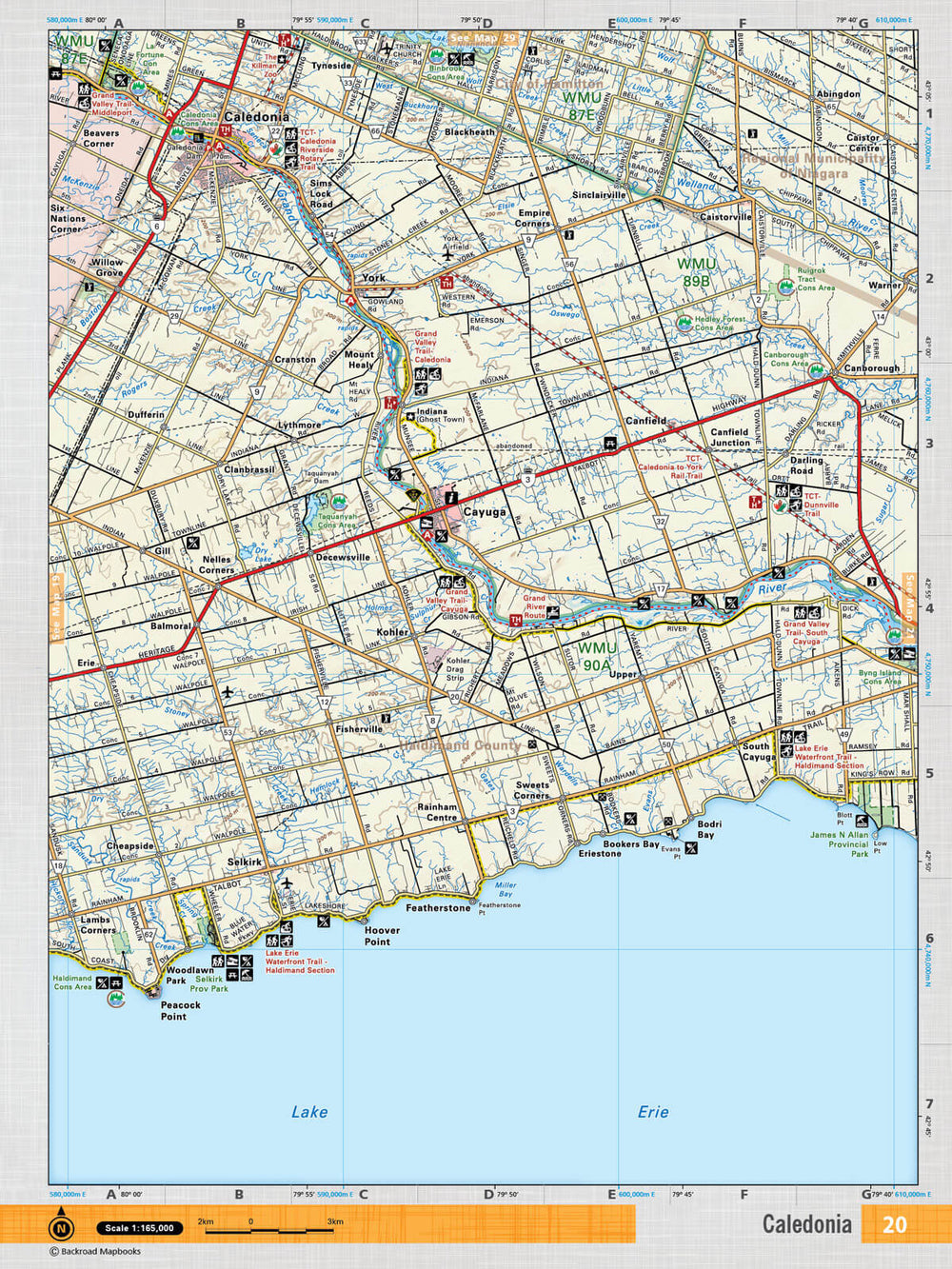 This recreation topographic map for Caledonia highlights all the logging/resource roads, hunting areas, fishing lakes & streams, campsites, paddling routes for canoeing and kayaking, wildlife viewing areas, multi-use trails for hiking, biking, horseback riding, cross-country skiing and snowshoeing, motorized trails for ATVing and snowmobiling & more. Covering 1,325 km2 (510 mi2), this 1:55,000 scale map measures 31.5 x 42 km (19.5 x 26 mi), providing you with more topographic and recreational detail for the Detroit River area than any other map on the market. New features include expanded road and trail data and countless recreational Points of Interest. Included on this map are Caledonia, Cayuga, Kohler, Peacock Point, Lake Erie, Bookers Bay, Canfield, Willow Grove, York, Grand River and more!