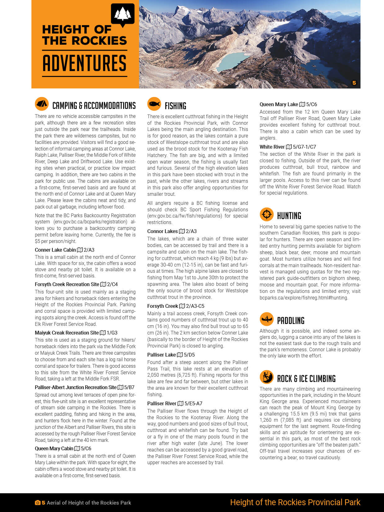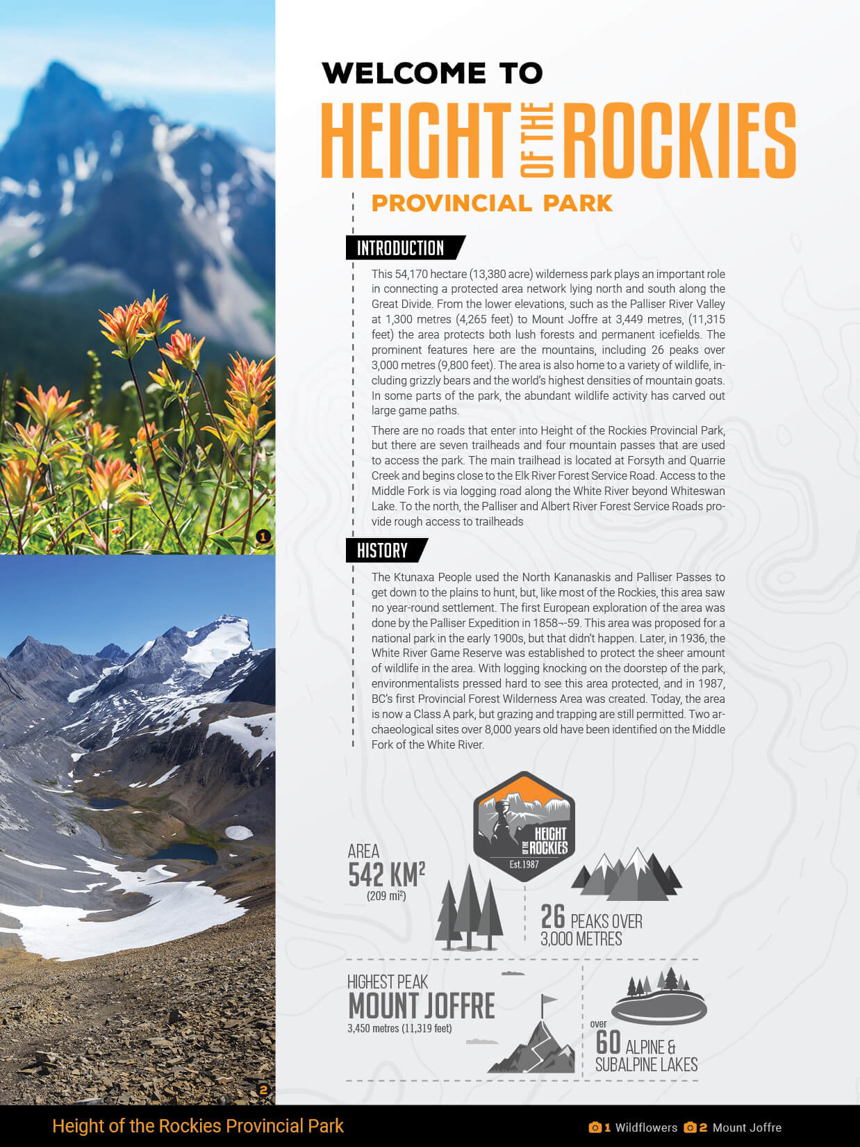 The Height of the Rockies Provincial Park PDF Booklet Contains: