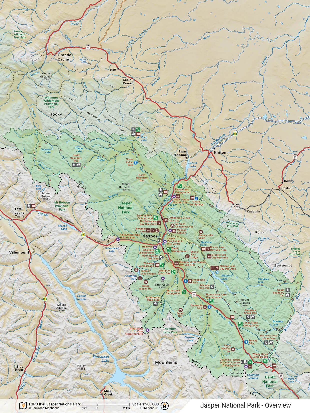 • A detailed 1:50,000 scale topographic maps of the sites & trails around Jasper townsite