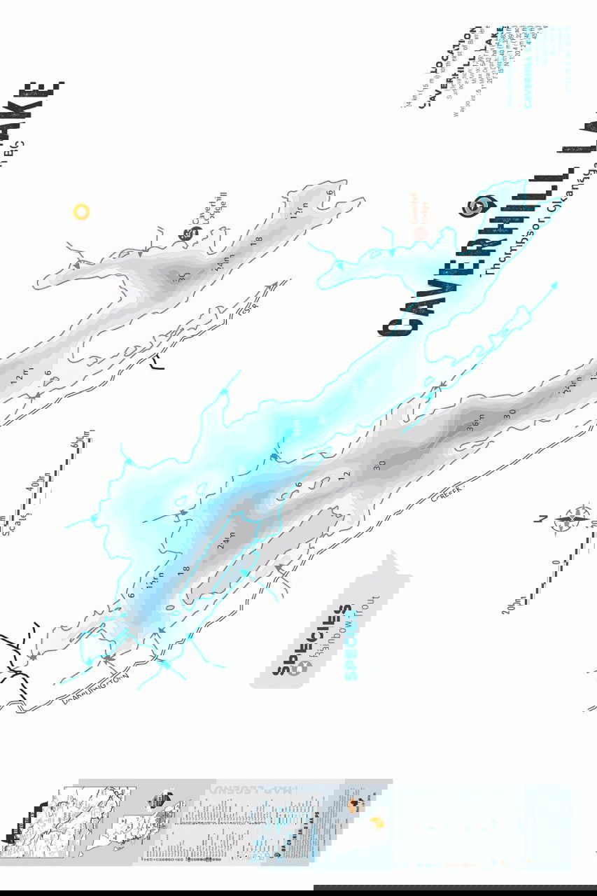 This Fishing Chart covers Caverhill Lake on Thompson Okanagan, BC. Resting in BC Fishing Region 3, the map features the lake bathymetry (or lake depths) and shore features including boat launches, campsites, fishing docks, parks and resorts. In addition to road or trail access points, the map also includes the lake location and information such as elevation, surface area, mean and maximum depth, and waypoint. Additional features include the fish species found in the lake, an area indicator or map key, scale bar and map legend.