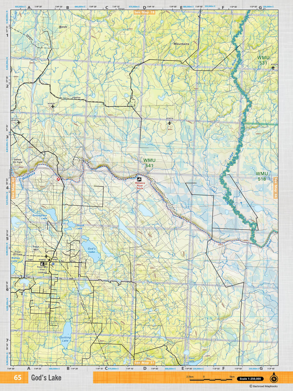 This recreation topographic map for the God's Lake area highlights all the logging and resource roads, multi-use trails for hikers, mountain bikers, horseback riders, cross-country skiers and snowshoers, motorized trails for ATVers and snowmobilers, fishing lakes and rivers, recreation areas, campgrounds, day-use areas, viewpoints, backcountry campsites, work camps, backcountry huts and cabins and more. No other map for the area provides you with this level of recreational or topographic detail. Special features include private land, labelled fish species and countless new roads, trails and recreational Points of Interest. This map also features enhanced oil & gas resource information, more detailed water features and seismic line corridors. Covering 1,268 km2 (490 mi2), this 1:85,000 scale map measures 96 x 127 km (59.5 x 79 mi). Included on the map are God's Lake, Liege River, Wabasca River, Quitting Lake, Goosegrass Lake, Corn Lake, Kidney Lake and more!