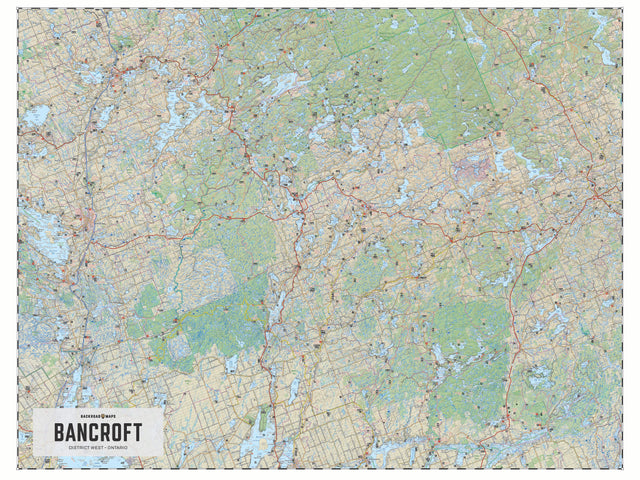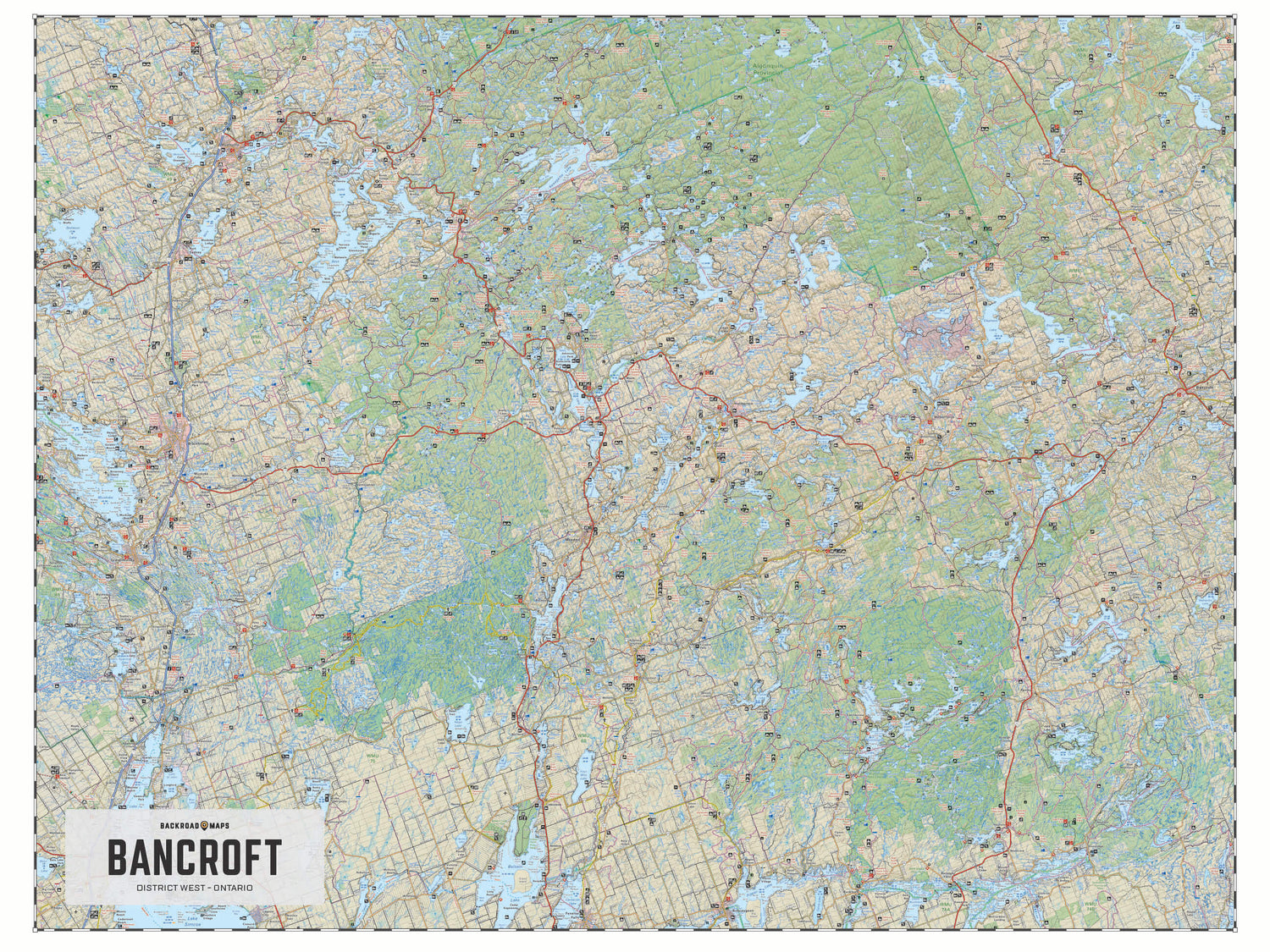 South of Ontario’s famous Algonquin Park lies some of Canada’s most verdant land, in a region known as the Bancroft district in the heart of cottage country. This detailed map includes the West Side of the Bancroft District Crown Land featuring Huntsville, Bracebridge, Gravenhurst, Queen Elizabeth II Wildlands Provincial Park, Muskoka Falls, Norland, Fenelon Falls, Bobcaygeon, Kawartha Highlands Provincial Park, Buckhorn, Gooderham, Haliburton, Minden, Bigwind Lake Provincial Park, Bancroft, Apsley and the backcountry beyond, where people come to play and end up wanting to stay.