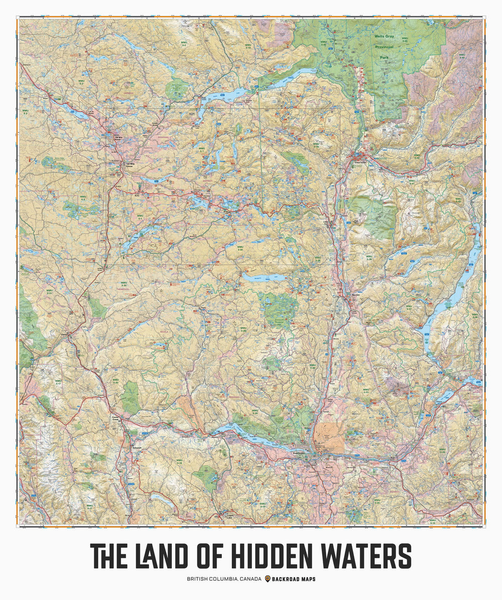 This recreation topographic map for The Land of Hidden Waters and the BC Fishing Highway 24 highlights all the roads, fishing lakes & streams, front and backcountry campsites, paddling routes for canoeing and kayaking, wildlife viewing areas, multi-use trails for hiking, backcountry skiing, snowshoeing, mountain biking, horseback riding & more. Using 1:50,000 scale water and road data, this map is available in various wall map sizes, providing you with more topographic and recreational detail for the area than any other map on the market. Special features include private land and countless roads, trails and recreational Points of Interest.