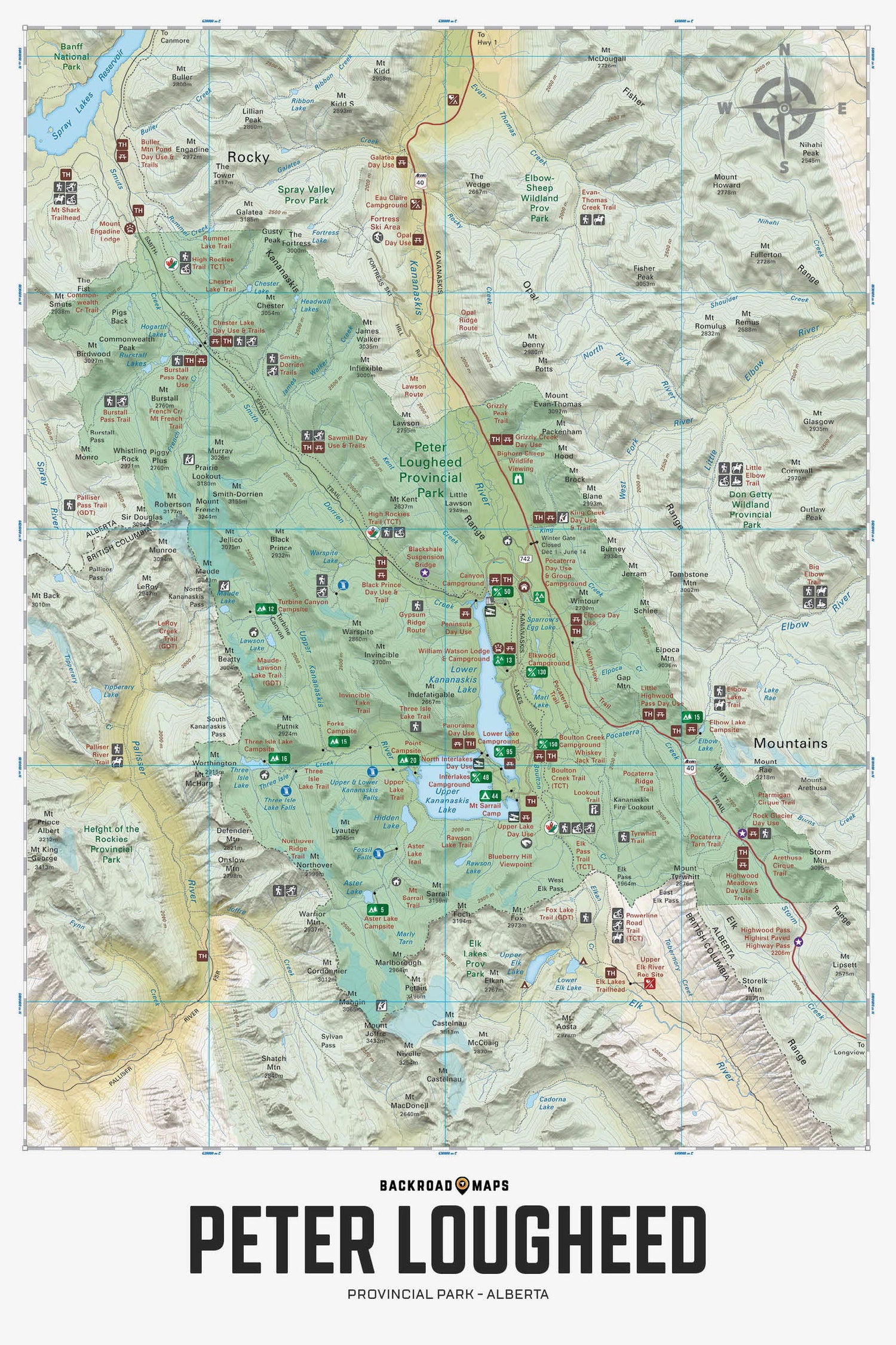 Covering Peter Lougheed Provincial Park and the surrounding area, this topographic recreation map highlights all the highways, access roads, campsites, trails for hiking, cross-country skiing, mountain biking, horseback riding and snowshoeing, fishing lakes and rivers, viewpoints, waterfalls, paddling routes, picnic areas, backcountry huts and cabins and more! Using 1:50,000 scale data, this map features topographic contours and relief shading. Included on the map are Upper and Lower Kananaskis Lakes, Burstall Pass, Elbow Pass, Elk Pass, Fortress Ski Area, Great Divide Trail, Headwall Lakes, Highwood Pass, Kananaskis River, Mount Lawson, Mount Murray, Mount Sarrail, Smith Dorrien Creek, Three Isle Lake, and more!