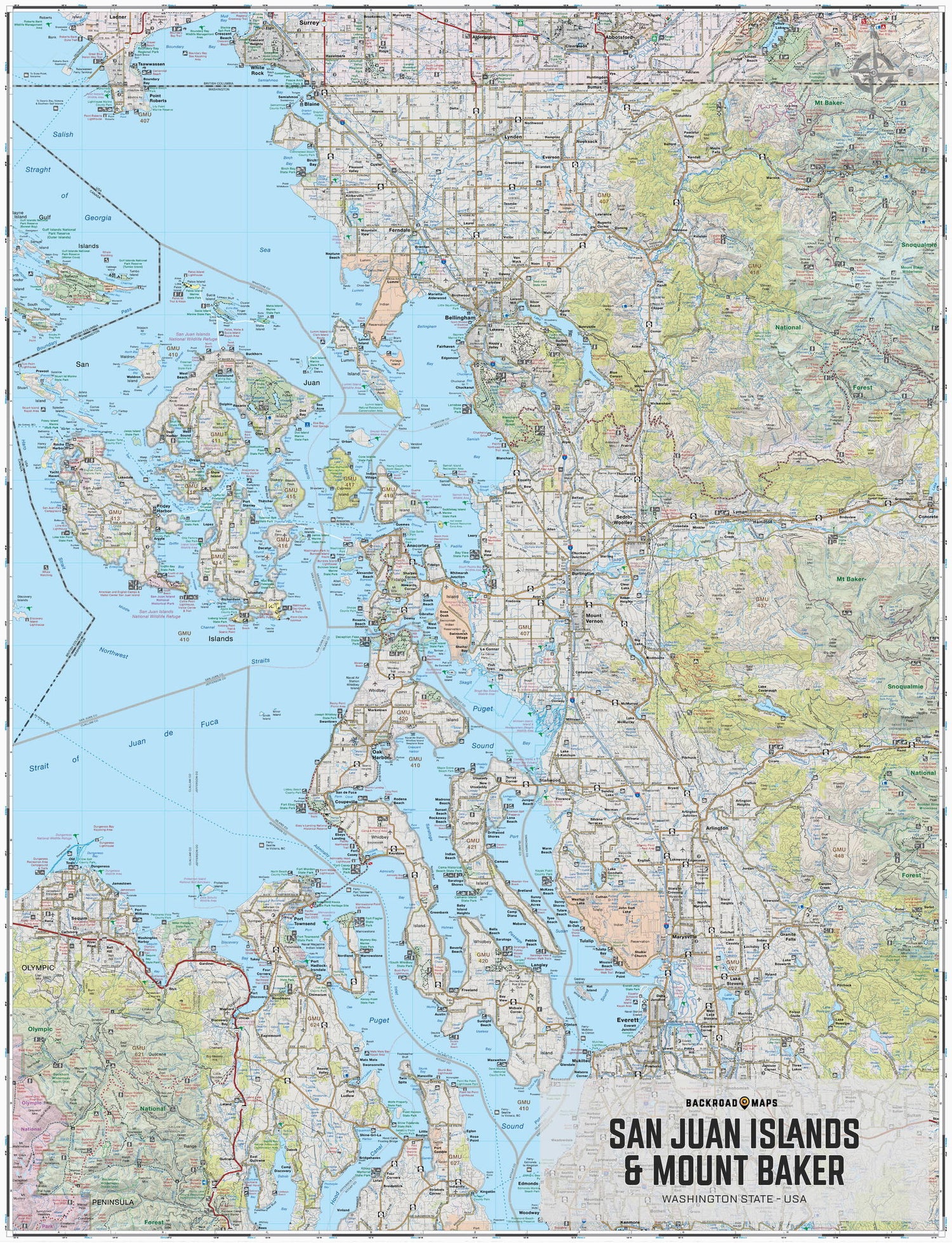 San Juan Islands & Mount Baker, Washington State - Wall Map