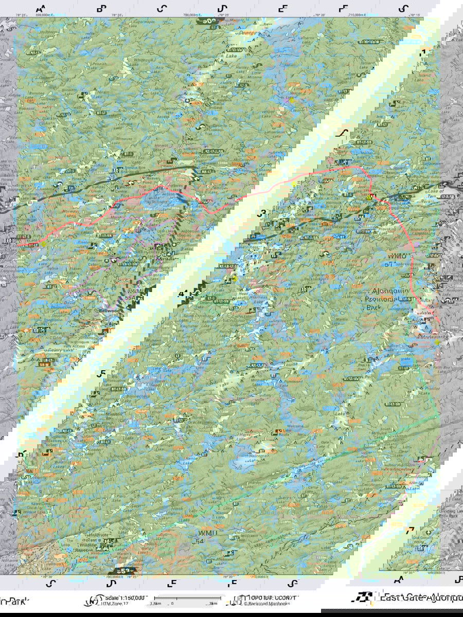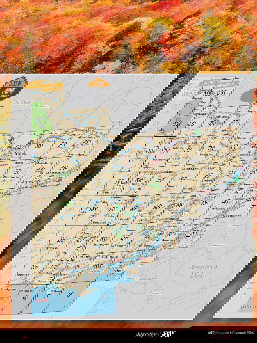 Covering the idyllic cottage destinations of the Muskoka and Kawartha areas, the natural splendor of Algonquin Provincial Park, the bustling National Capital Area and all the way up to North Bay on Lake Nipissing in the north, this Mapbook is your ultimate guide to one of the country’s most popular outdoor recreation destinations. Known as the heart of Ontario’s outdoors, Cottage Country is home to thousands of scenic lakes and rivers, vibrant forests and rugged and rocky Canadian Shield. Algonquin Park, in particular, is one of the world’s most popular canoeing destinations, attracting people from far and wide to paddle, camp and fish among its iconic natural beauty.
