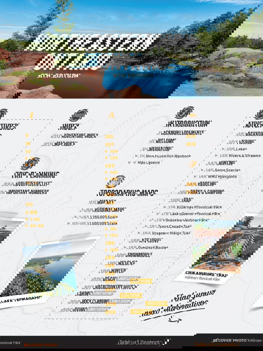 Park AdventuresNortheastern Ontario is one of the least populated areas of the province, leaving plenty of space for big parks like Killarney Provincial Park, Lake Superior and Pukaskwa National Park and others. In the 6th edition Northeastern Ontario Backroad Mapbook you will find over 135 listings for the region's provincial, national and regional parks, 76 frontcountry campsites, and over 2,100 backcountry campsites marked on the maps. Complete with information on access, activities, trails, wildlife and more, there are plenty of parks to explore up north.