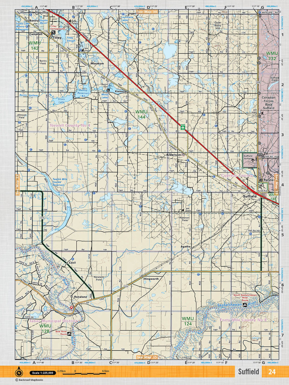 This map also covers the following Wildlife Management Units: WMU 124 - Whitla, WMU 128 - Vauxhall, WMU 142 - Newell, WMU 144 - Tilley, WMU 148 - Schuler, WMU 732 - Canadian Forces Base Suffield .