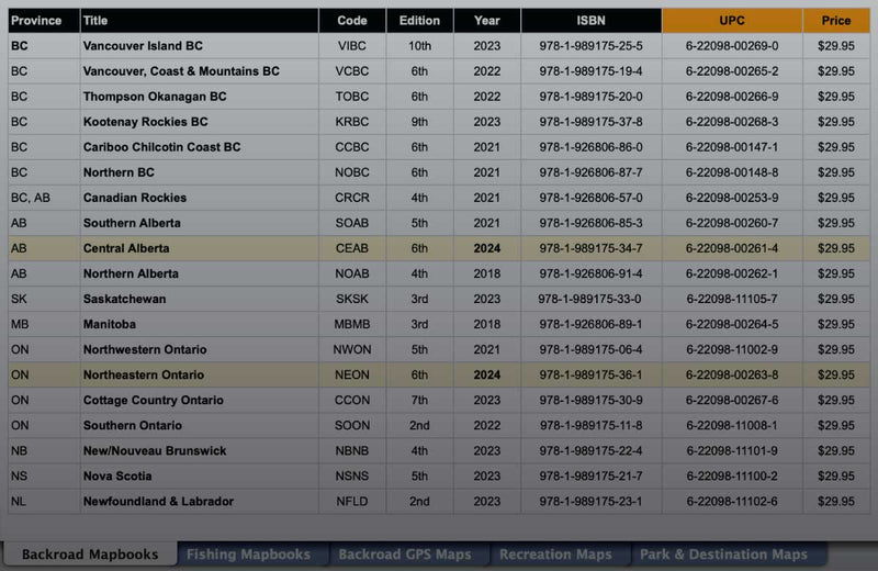 Backroad Maps is your number one source for the Canada's outdoor recreation and adventure maps. For more information about our product lines or new retailers requests, please contact our Sales Team at sales@backroadmapbooks.com